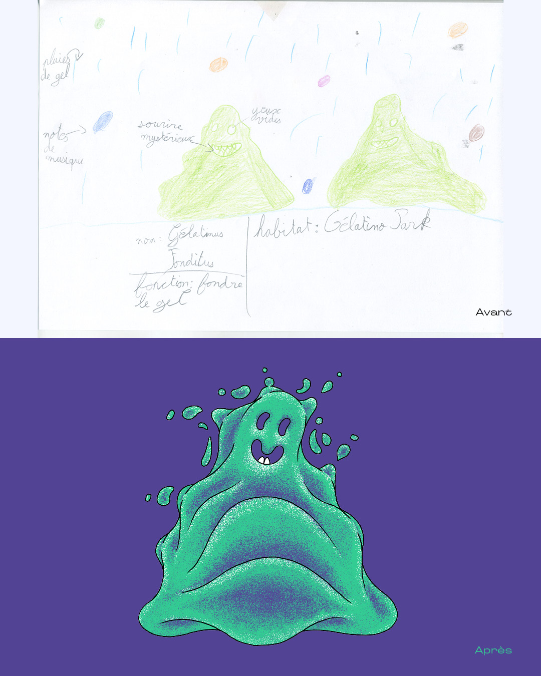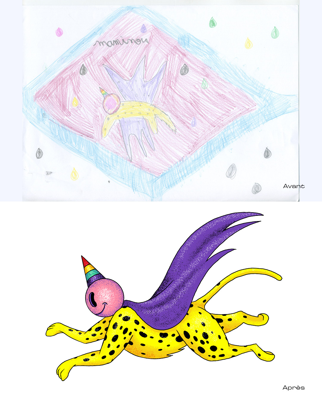 Création de l’affiche d’un spectacle, avec comme matière des centaines de dessins d’enfants, issus des actions culturelles.
