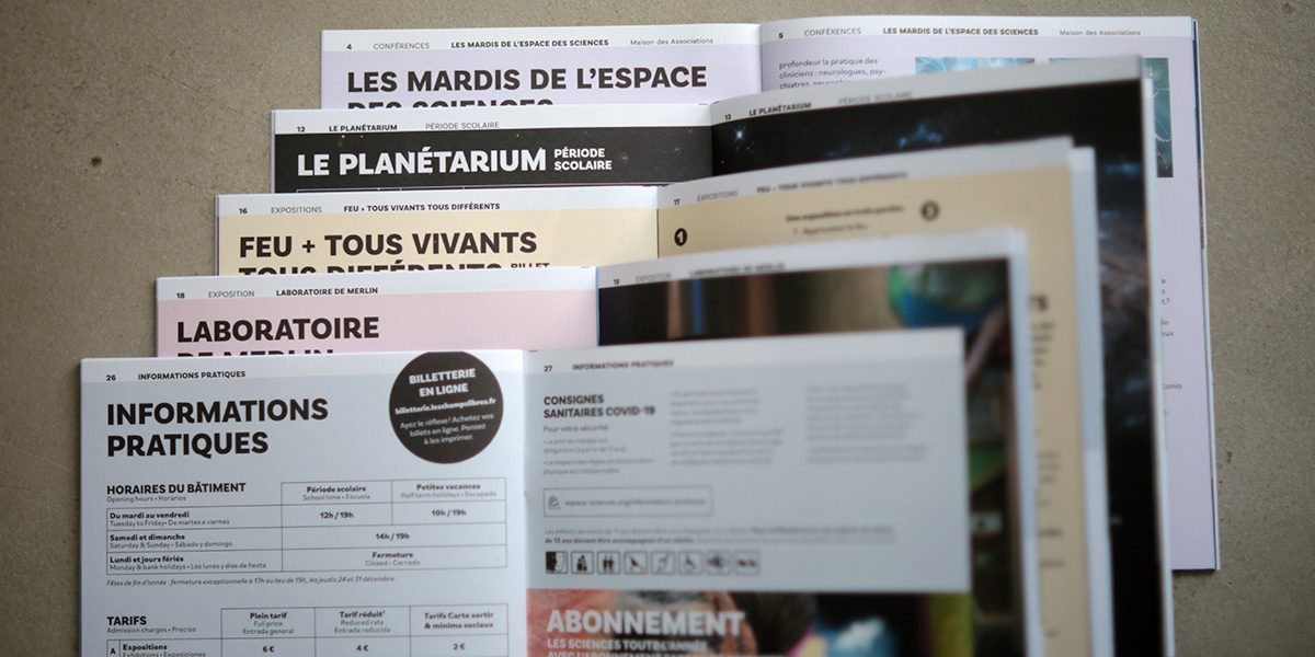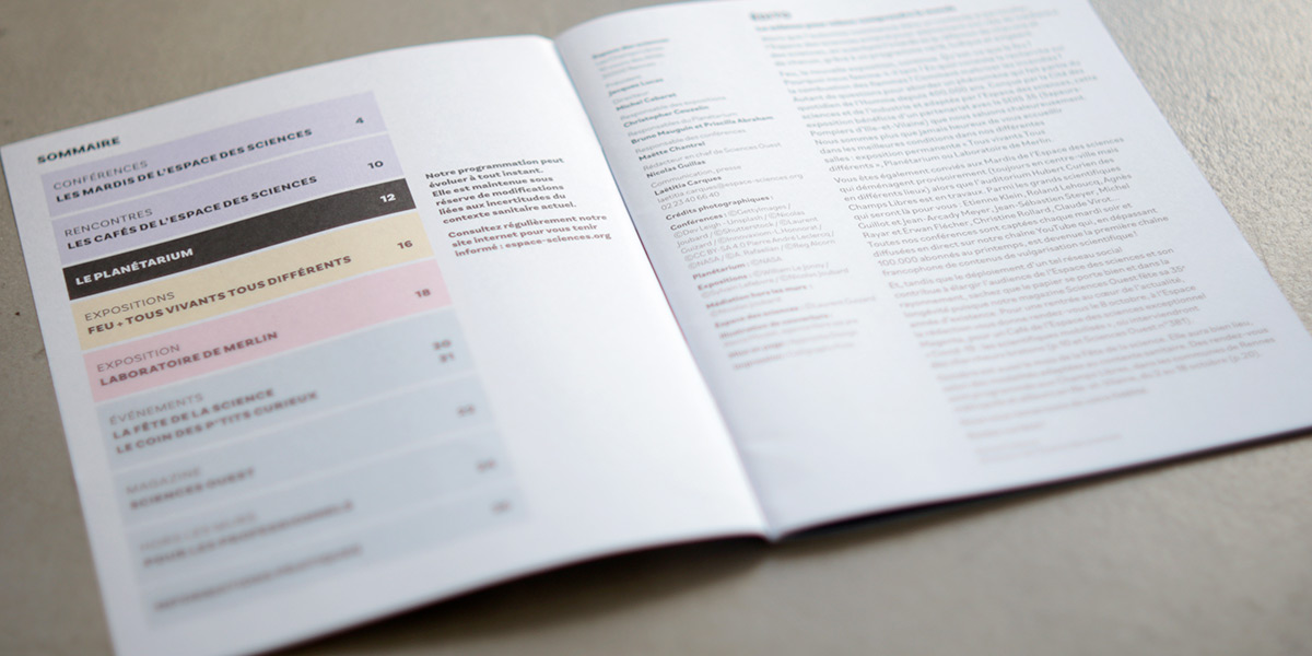 Refonte totale du programme trimestriel de l’Espace des sciences de Rennes.