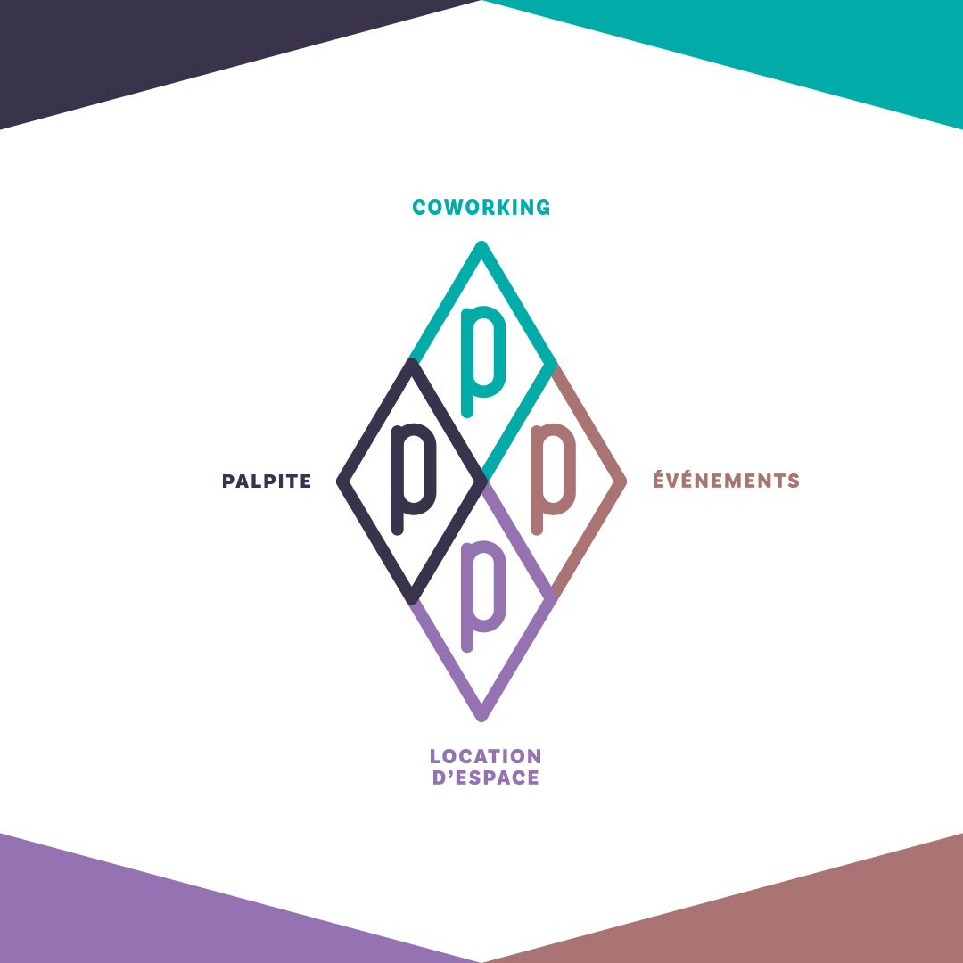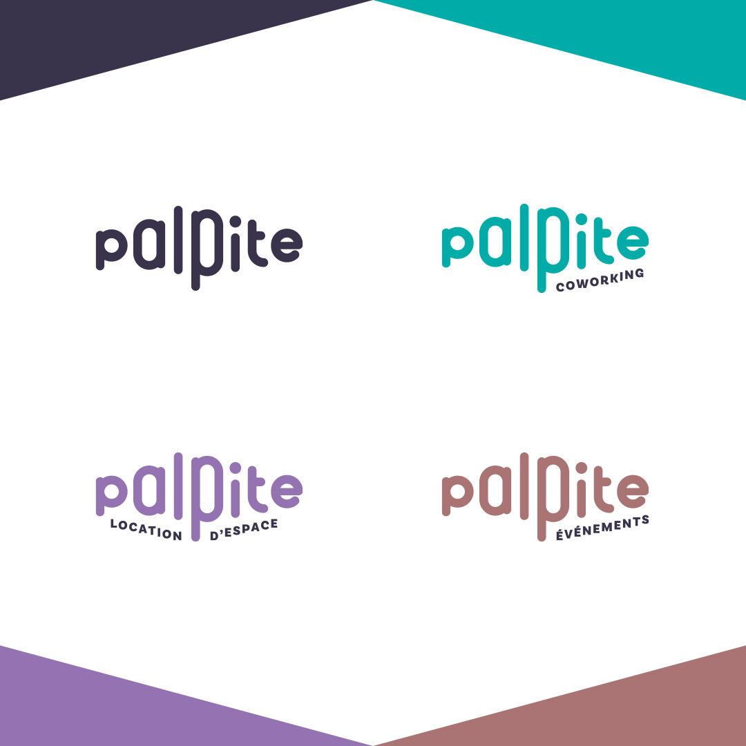 Projet de logo et d’identité visuelle pour Palpite, lieu de coworking et d’organisation d’événement à Rennes.