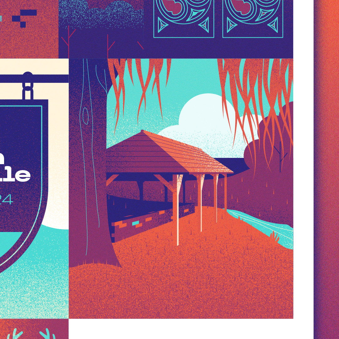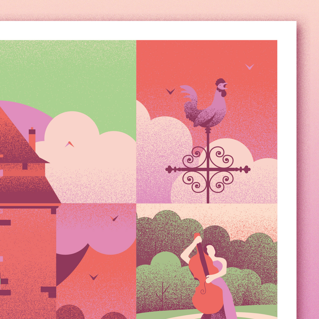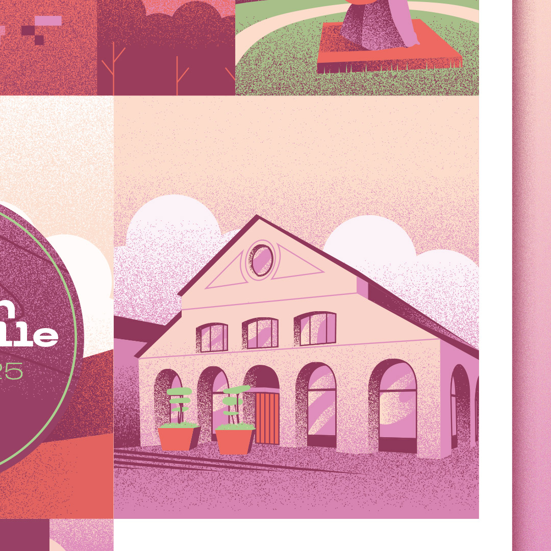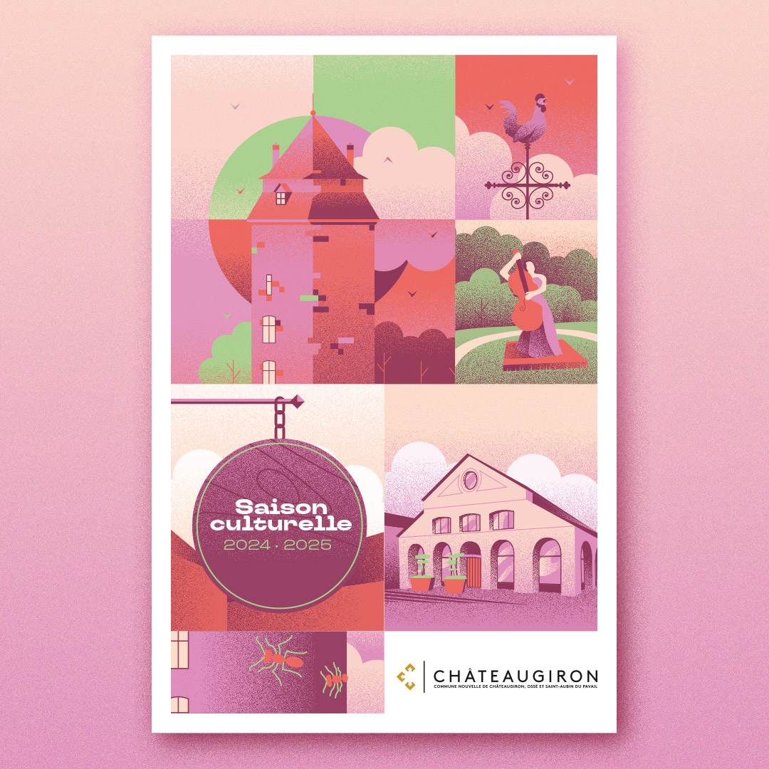 Le style graphique est décliné de la première plaquette réalisée en 2022, dans laquelle chaque détail était emprunté au patrimoine médiéval de la petite cité de caractère.